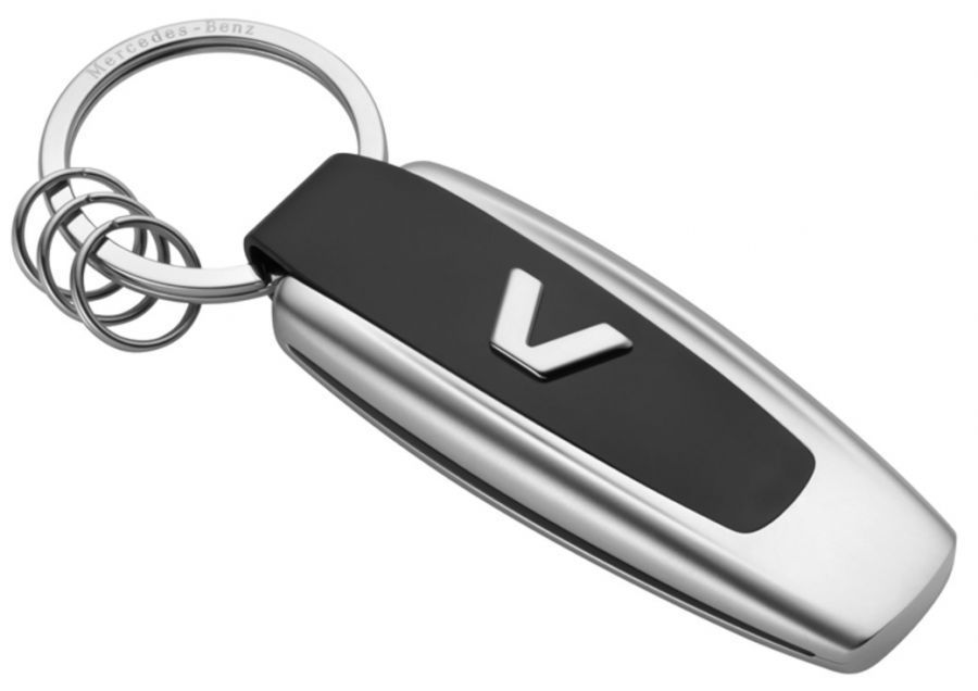 Брелок Mercedes-Benz Key Ring, Model Series V-Class, артикул B66958420.Официальная коллекция Mercedes, 2017 год. Идеальный порядок: с брелоком для ключей «Модельный ряд» «V» все важные ключи будут всегда под рукой. Брелок для ключей из нержавеющей стали в исполнении серебристо-черного цвета. Уменьшенная копия букв на задней части автомобиля на лицевой стороне и объемная звезда «Мерседес-Бенц» на оборотной стороне создают дополнительные акценты. Одно большое и три маленьких кольца обеспечивают быструю смену / снятие ключей. Длина: 9 см. Артикул: B6 695 8420